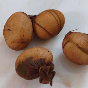 Coffee dyed eggs ready to be unwrapped from their nylon casings