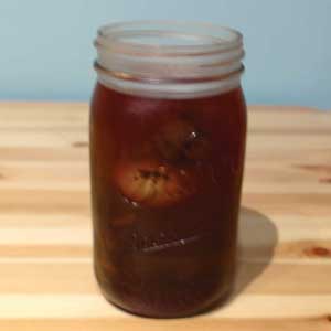 coffee dyed eggs in jar with coffee dye solution for refrigerator rest